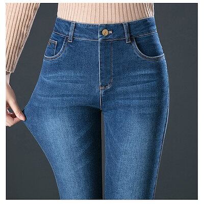 スキニー パンツ デニム レディース 春秋 ハイウエスト ジーンズ ズボン ロング丈 ボトムスタイト フィット ストレッチ アップヒップ ジーパン