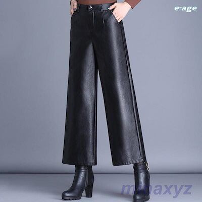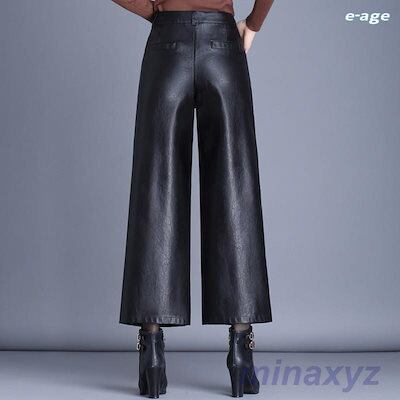 大人の魅力 レザーパンツ レディース ワイドパンツ ガウチョパンツ ハイウエスト ボトムス 革パン PU 合皮 着痩せ 撥水加工 伸縮 体型カバー 美脚 秋冬