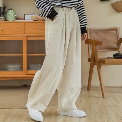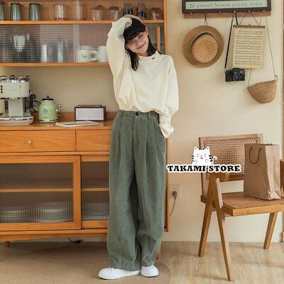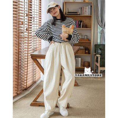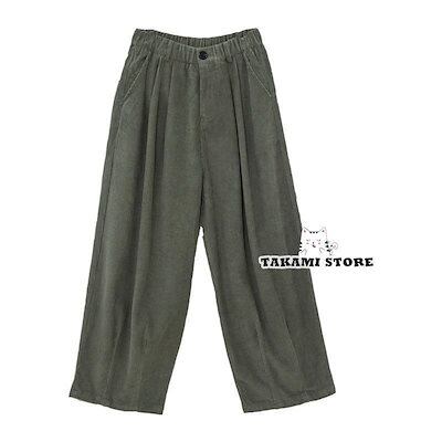 大人気 上品 コーデュロイ ワイドパンツ レディース リブ ロング丈 ウエストゴム ガウチョパンツ 体型カバー 冬 春秋 ゆったり風 コーデ 暖かい ストレート