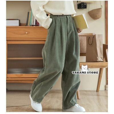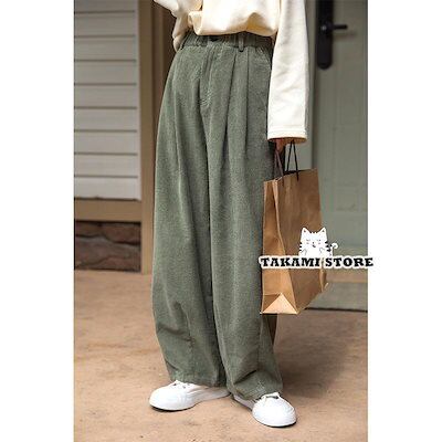 超目玉新品 コーデュロイ ワイドパンツ レディース リブ ロング丈 ウエストゴム ガウチョパンツ 体型カバー 冬 春秋 ゆったり風 コーデ 暖かい ストレート