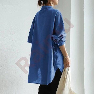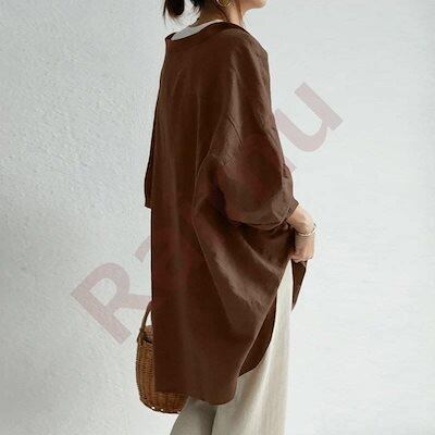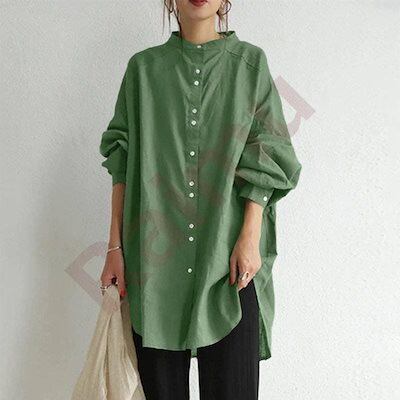 ロングシャツ長袖チュニックトップスシャツレディース大きいサイズドルマン袖前開きボタン留めシンプルコーデ秋冬物