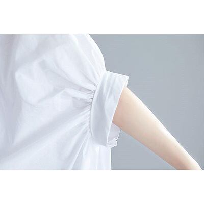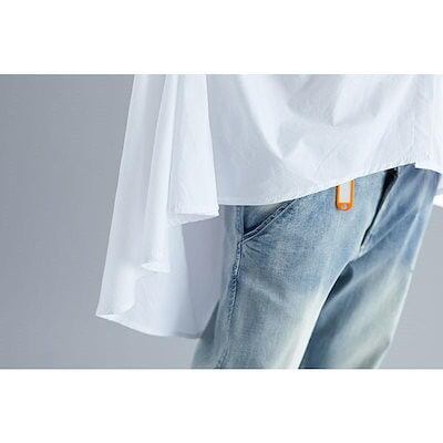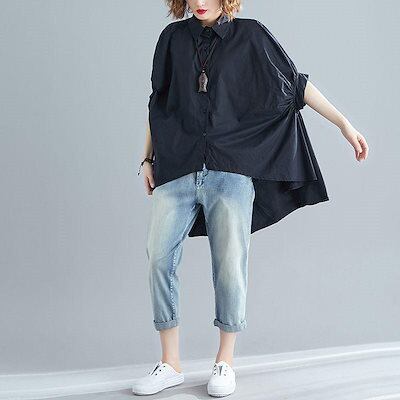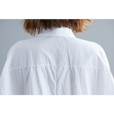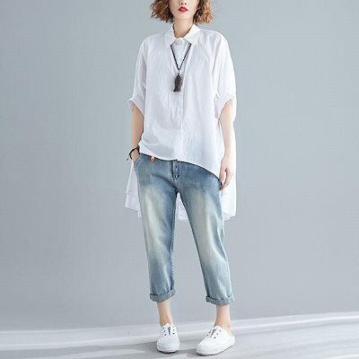 シャツ ロングシャツ フレア レディース トップス チュニック 長袖 綿麻混 コットン リネン ライン 無地 ボタン付き 白 ホワイト 大きめ