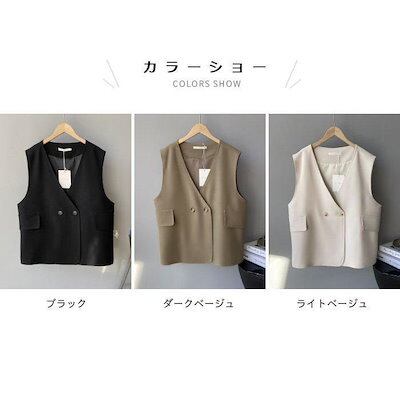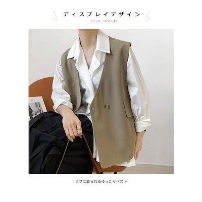 大人の魅力 レディース ベストジレジレベストゆったりノースリーブフェイクポケットダブルボタン重ね着Vネック