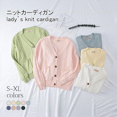ニットカーディガン レディース ボタンカーディガン ケーブル編み Vネック スクールカーディガン ゆったり ニットコーディガン レトロ