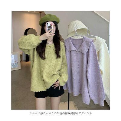 ニットカーディガン レディース カーディガン ワイドカラー 秋 アウター ゆったり ニット カーデ 大きいサイズ ボタンカーディガン 大人可愛い