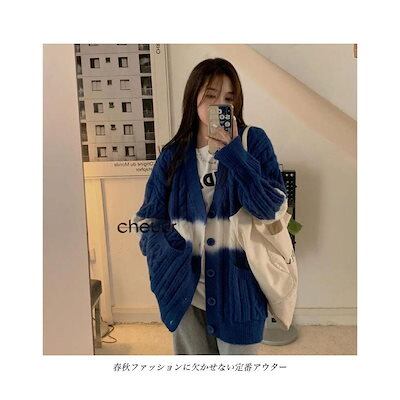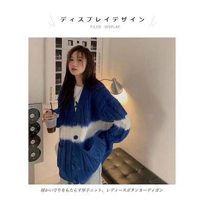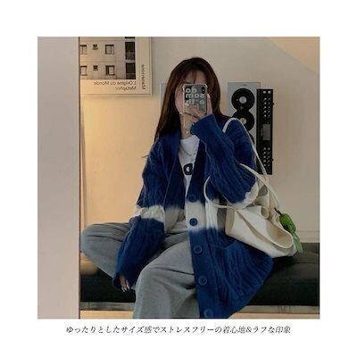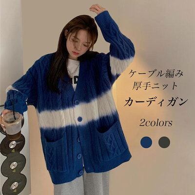 ニットカーディガン 厚手 ケーブル編み レディース カーデ グラデーションカラー 厚手ニット ゆったり コーディガン ボタンカーディガン