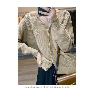 カーディガン レディース ニット カーデ Vネック ボタンカーディガン レトロ ショートカーディガン ニットカーディガン 春秋 アウター ゆったり