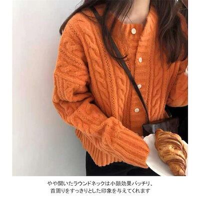 ニットカーディガン レディース カーディガン ニット ヒップ丈 トップス 前開き 長袖 厚手 クルーネック ケーブル編み ボタン付き お洒落 快適 着回し