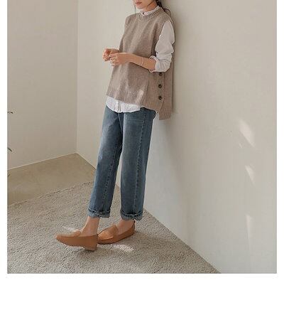 ニットベスト レディース ニット ベスト トップス カーディガン ノースリーブ 重ね着 定番 ブ カジュアル 大人 かわいい シンプル おしゃれ サイドスリット ボタン付き 春 秋 冬
