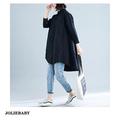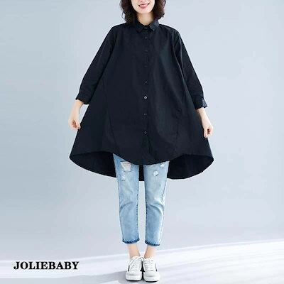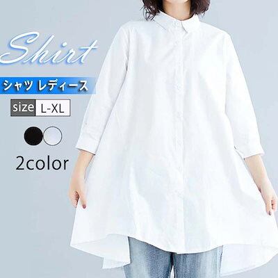 新品 大人気 シャツ レディース ロングシャツ フレア トップス チュニック 長袖 綿麻混 コットン リネン Aライン 無地 ボタン付き 白 ホワイト 大きめ