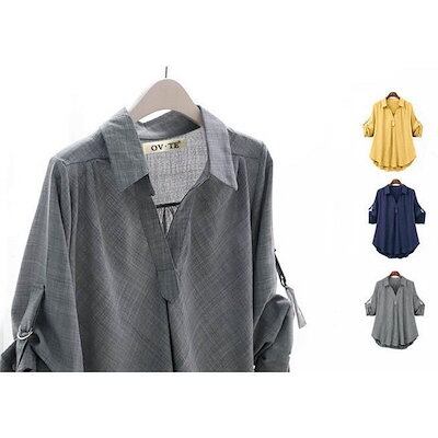 チュニック シャツブラウス Vネック ゆったり ボタン レディース トップス
