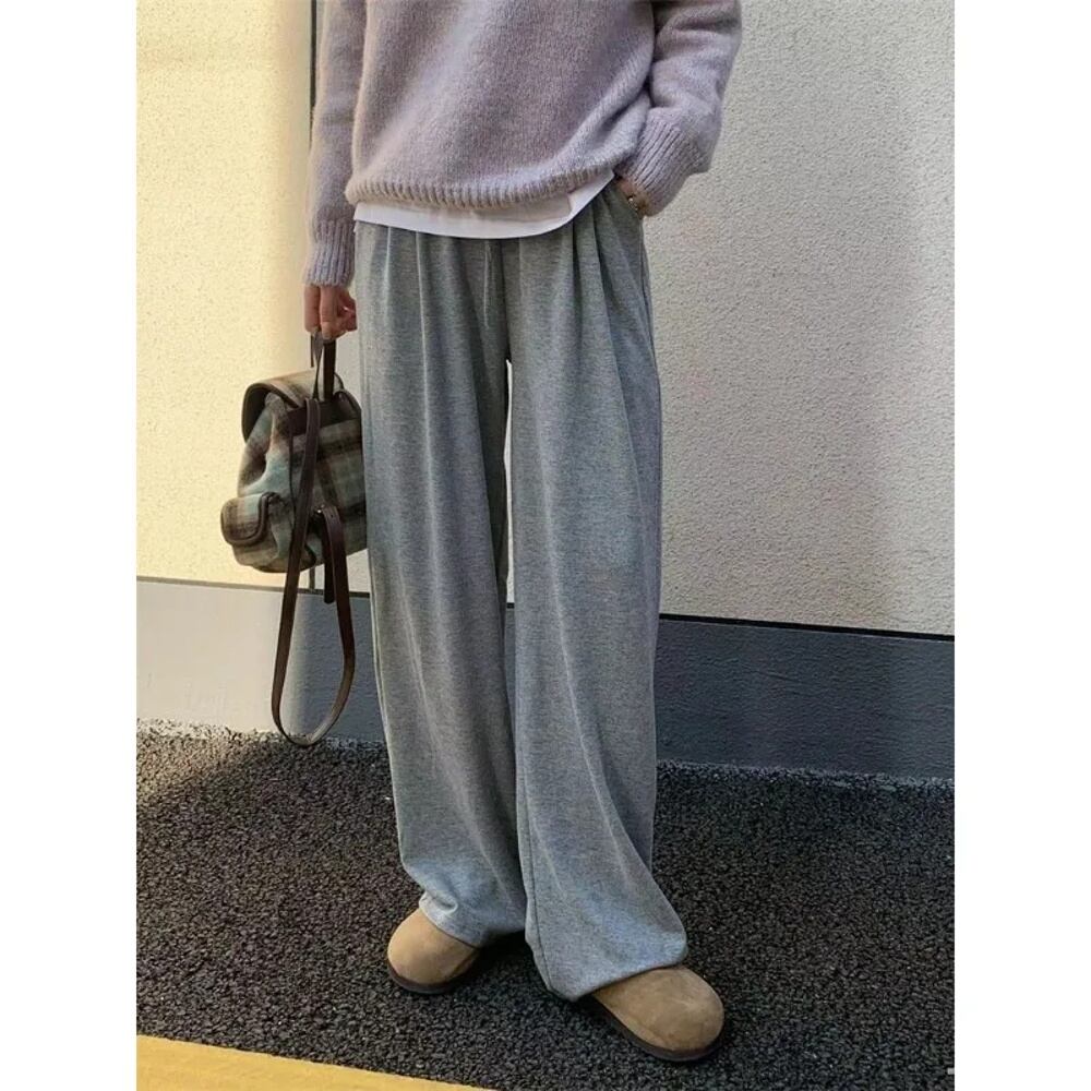 Deeptown-レディースカジュアルバギーパンツ、ハイウエスト、ワイドレッグスウェットパンツ、スポーツジョガー、ベーシックストリートウェア、ストレートパンツ、和風 ボトム ワイドレッグ バギーパンツ T240831224114_02