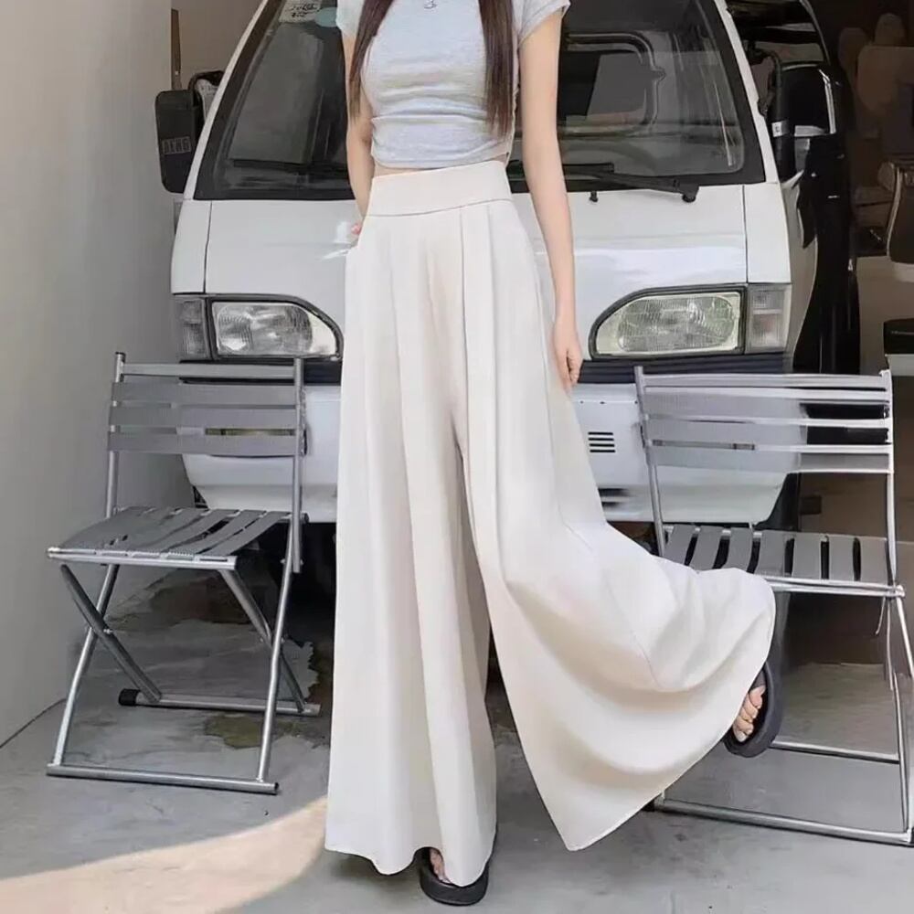 女性用ハイエンドワイドレッグパンツ,超ルーズフィット,ベルスカート,薄手のカジュアルスーツ,夏,春,秋 ボトム ワイドレッグ バギーパンツ T240901065719_01