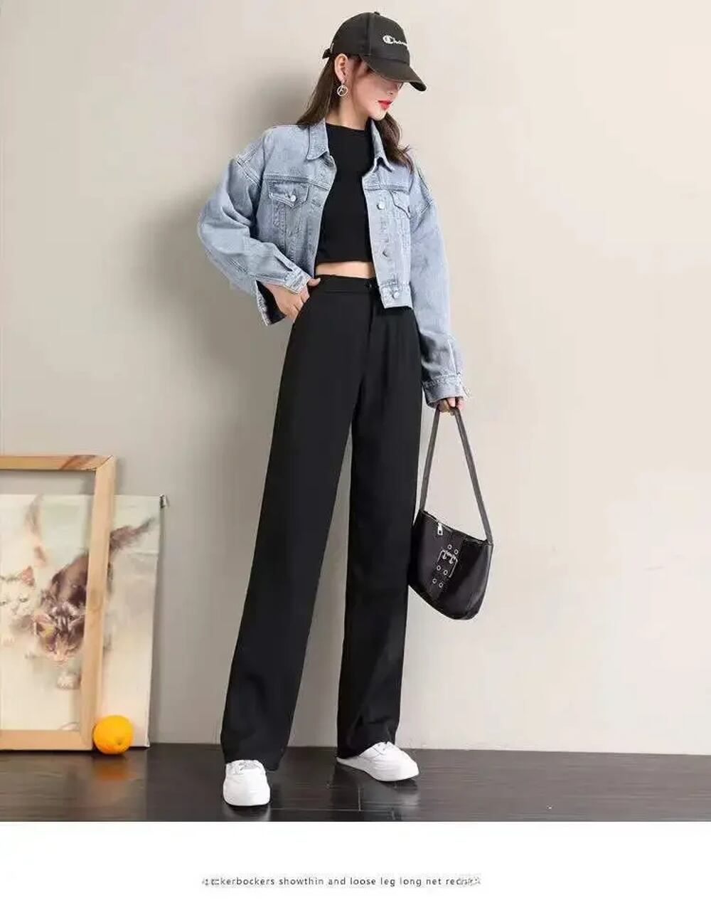 女性用ハイウエストブラックベルボトムスーツ,カジュアルパンツ,ラージサイズ,ストレートパンツ,ファッショナブル,新しい秋のスタイル ボトム ワイドレッグ バギーパンツ T240901065728_01