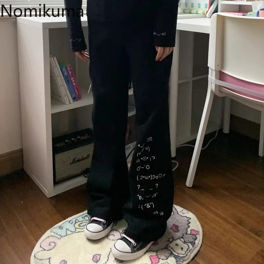 レディースハイウエストフレアパンツ,フレアフィットパンツ,カジュアル,トラックスーツ,プリント,韓国シック,ブラック,サマー,ニューコレクション2024 ボトム ワイドレッグ バギーパンツ T240901065746_01