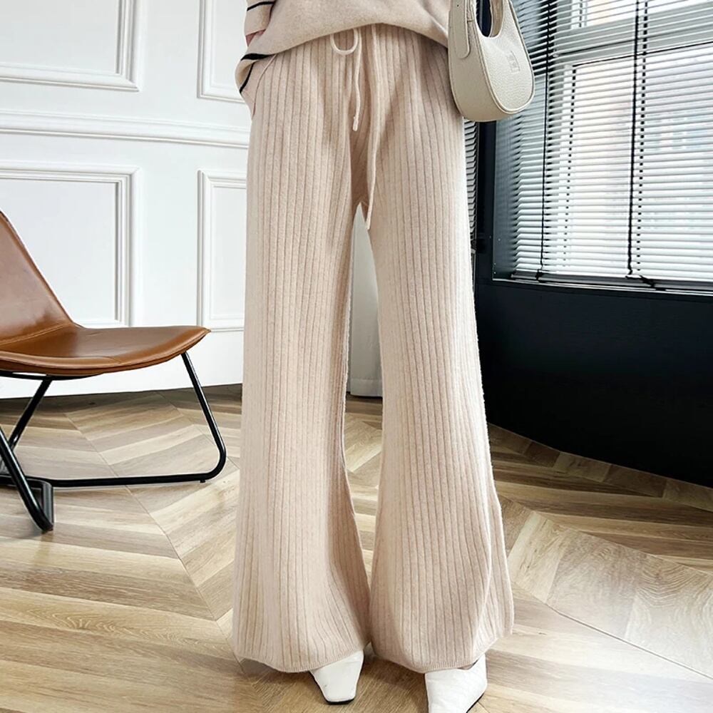 女性用ハイウエストワイドレッグパンツ,メリノウール100%,ニット,ルーズ,ウォーム,カジュアル,韓国ファッション,秋冬 ボトム ワイドレッグ バギーパンツ T240901070037_02