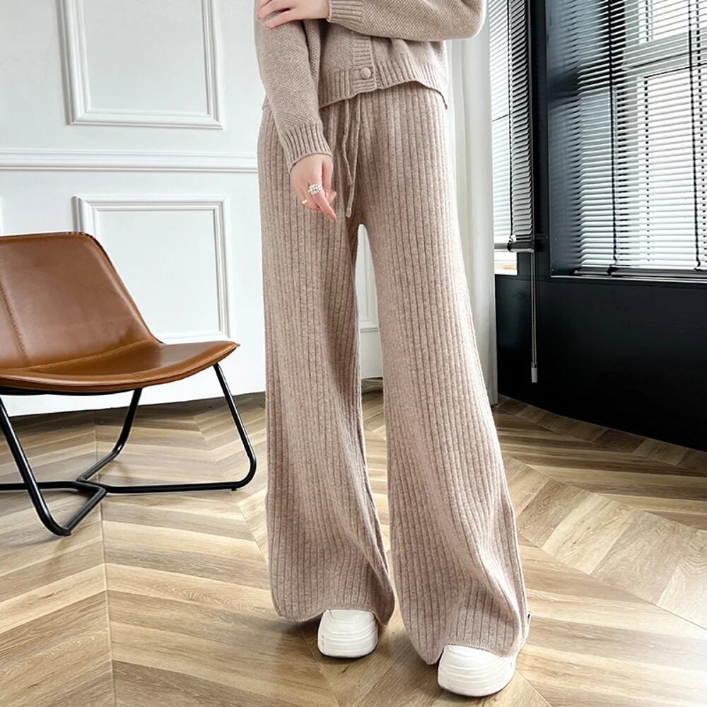 女性用ハイウエストワイドレッグパンツ,メリノウール100%,ニット,ルーズ,ウォーム,カジュアル,韓国ファッション,秋冬 ボトム ワイドレッグ バギーパンツ T240901070037_04