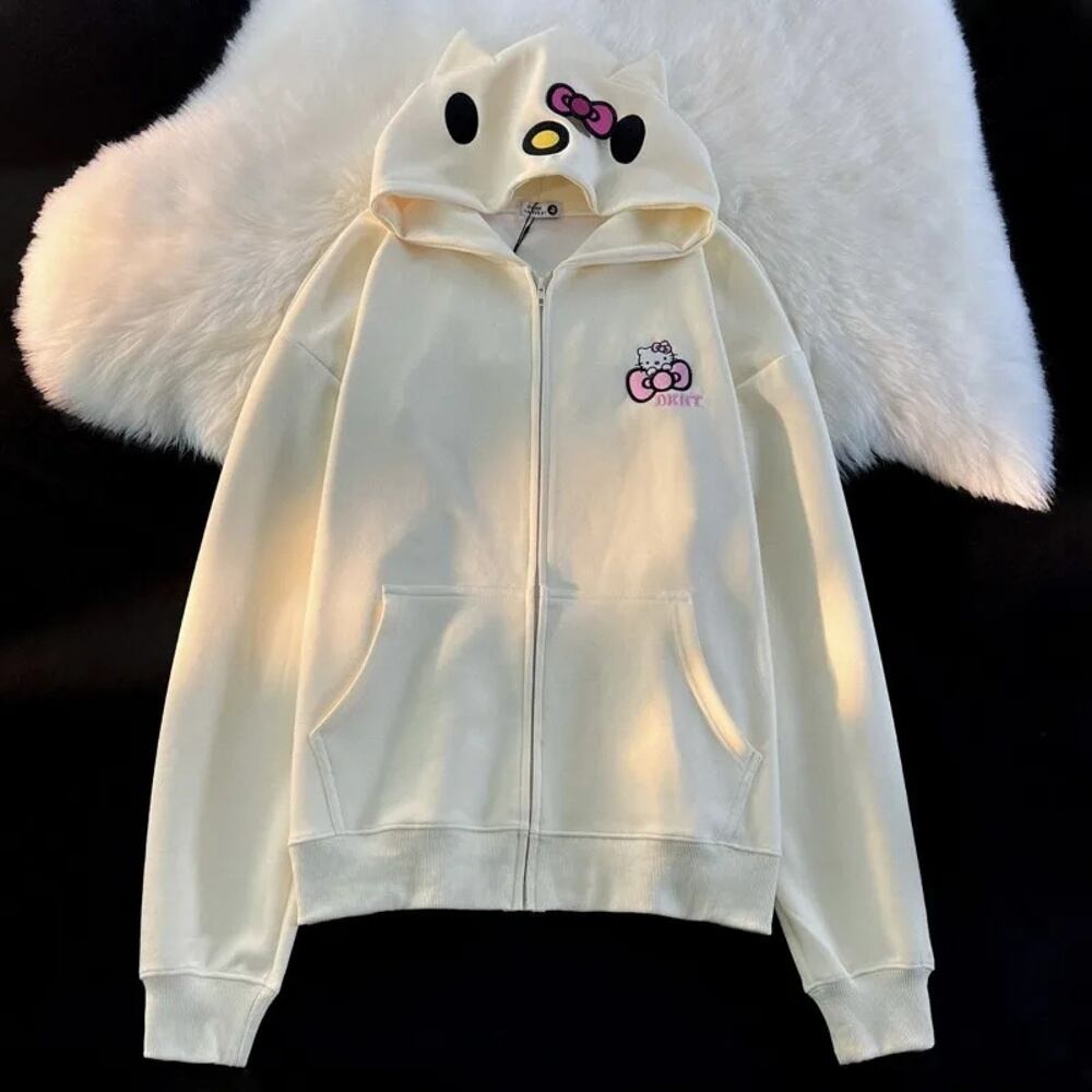 女性のためのハローキティ刺zipジップパーカー、アメリカのヴィンテージかわいい大学スタイル、カップルコート、ルーズストリートウェア、怠惰なカジュアルな2kトップス ボトム ワイドレッグ バギーパンツ T240901070134_01