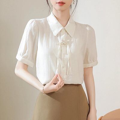 今っぽシアーシャツ 夏先取りブラウス シャツ シックなファッション レディース 半袖 2024 夏 新作 韓国製 ボタン ホワイト ブラウス トップス 韓国ファッション