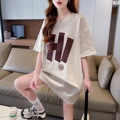 Tシャツカットソー 夏 ロングTシャツ 韓国ファッション 半袖 シャツ レディース セミロング 大きいサイズ 体型カバー? tシャツ ゆったり 怠惰な風 トップス/ブラウス