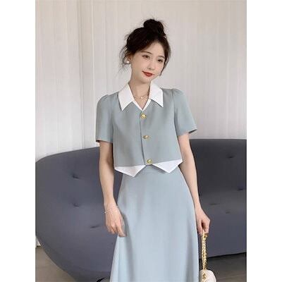 セットアップ レディース 夏制服 サマースーツスカートショート丈トップススカート2点セット 女子学生服 文化祭 スカート学?祭 高校生中学