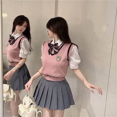 セットアップ レディース 夏セーラー服可愛らしいJK制服セットアップ ファッション レディース夏フェイクレイヤード切り替えトップス