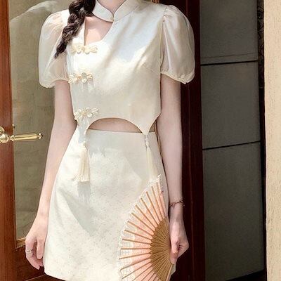 セットアップ レディース 夏 新中国風ショート丈トップス着痩せ ゆったり改良チャイナドレスセット