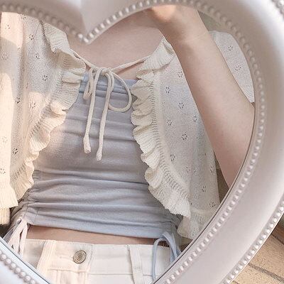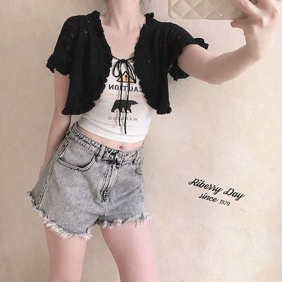 夏 人気なuvカット カーディガン さわやか 透かし彫り ハイウエスト ショート丈 半袖 ニット 着痩せ 百掛け日焼け止め レディース 韓国ファッション