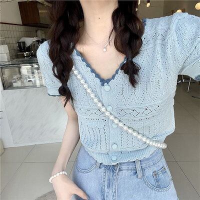 夏 人気なuvカット カーディガン 透かし彫り ニット半袖 ショート丈着痩せ 百掛け日焼け止め レディース 韓国ファッション