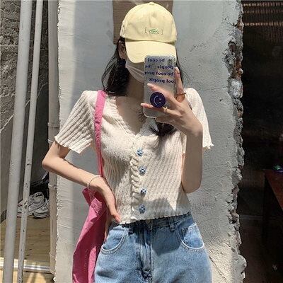 夏 人気なuvカット カーディガン ショート丈 上着 Vネック 半袖 ニット 着痩せ 百掛け日焼け止め レディース 韓国ファッション