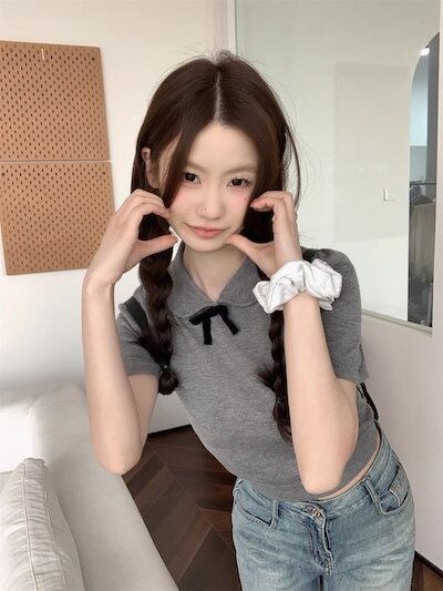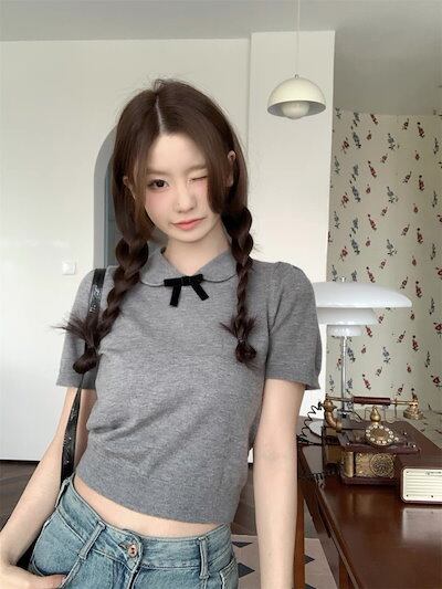 2024春夏トップス Tシャツ ニット 丈短め スリム 細見え 夏 かわいい おしゃれ 韓国ファッション レディース お出かけ