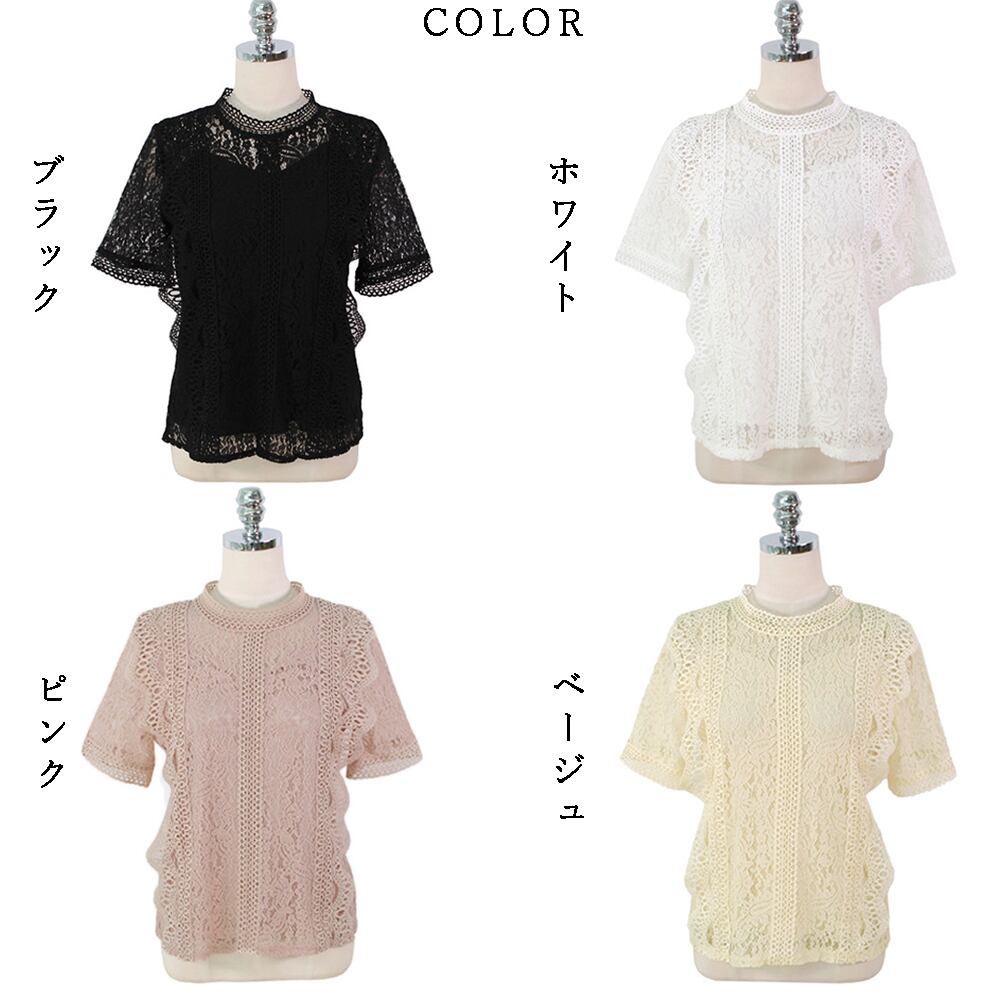 【日本倉庫即納】 総レース ブラウス レディース 刺しゅうレース トップス フリル 半袖