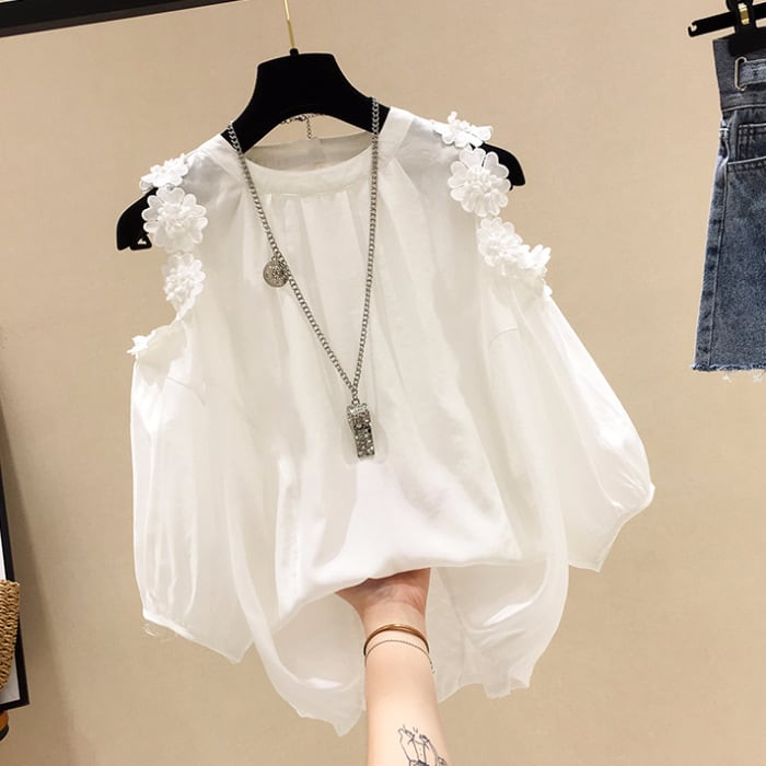 花 シフォンのシャツ 女 半袖 春夏 ゆったりした 上着