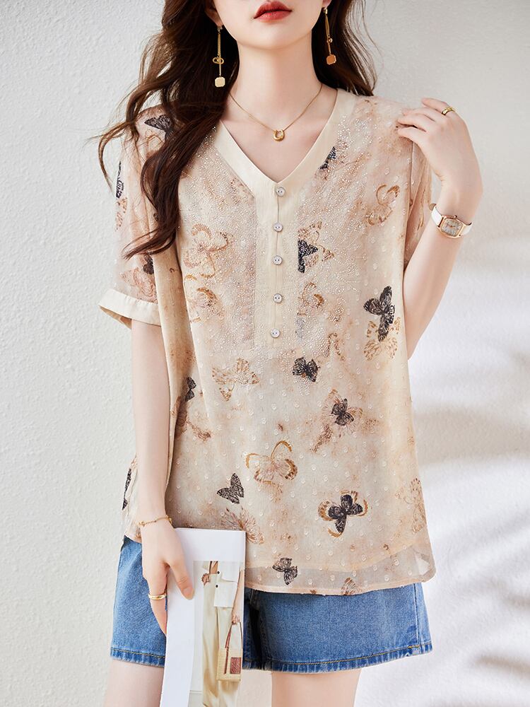 初回送料無料 大きいサイズのシフォンの半袖シャツ カジュアルトップス 人気上着