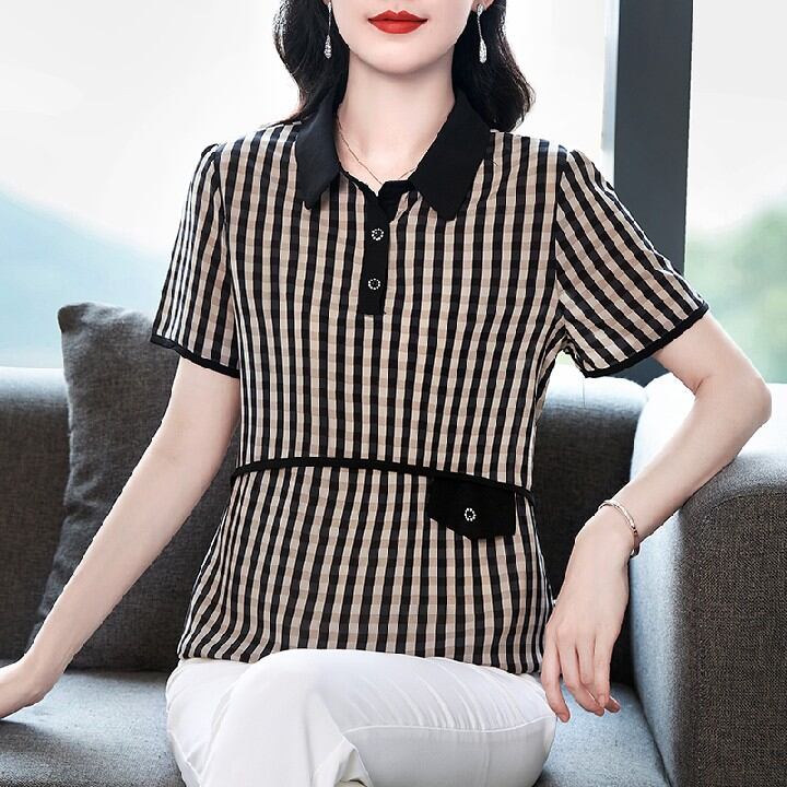 初回送料無料 シャツ風半袖Tシャツ 上着 折り襟 レディースファション商品 カジュアルトップス