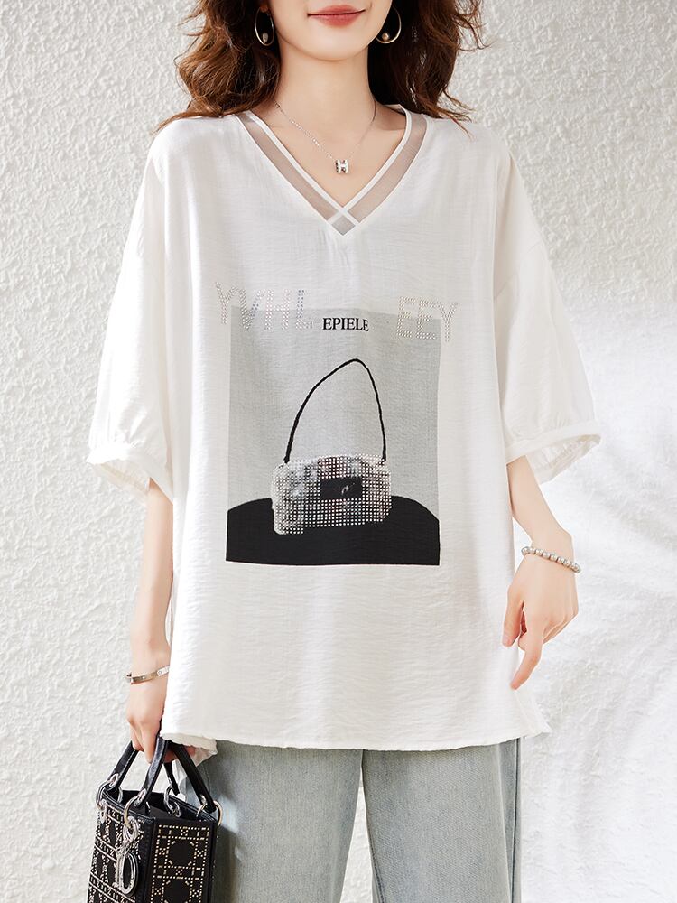 初回送料無料 Vネックシャツ 半袖Tシャツ カジュアル上着 レディースファション商品 人気上着