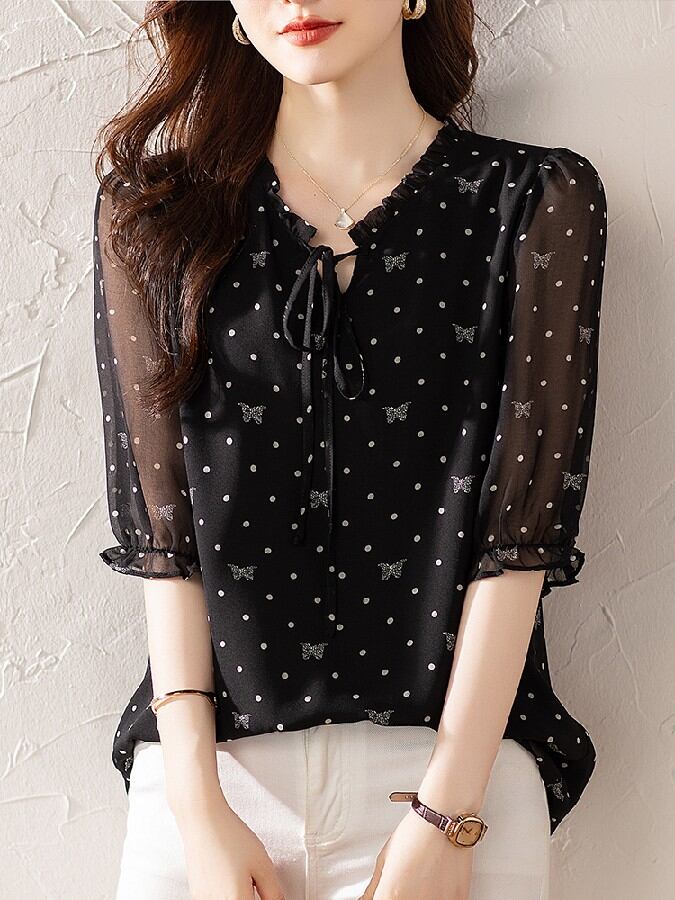 初回送料無料 半袖シャツ 上着 シフォントップス レディースファション商品 カジュアルブラウス