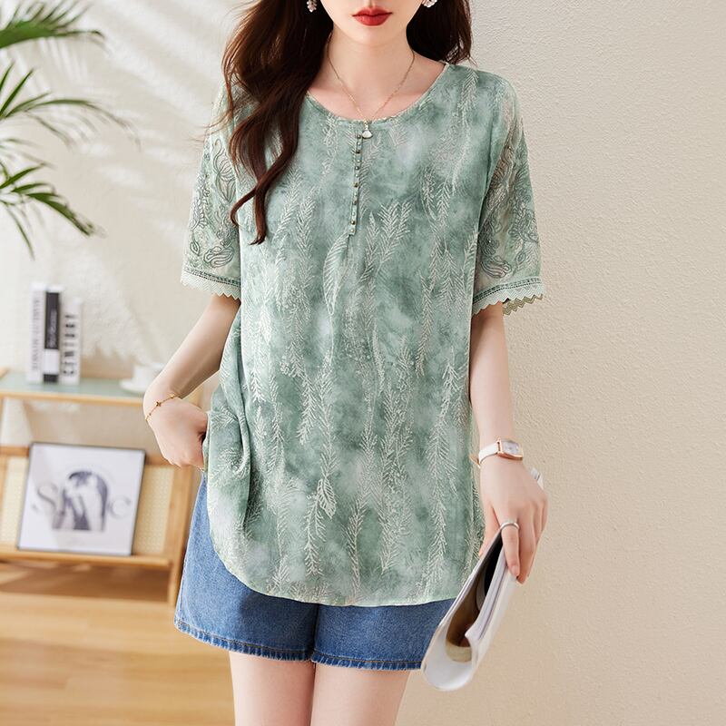 初回送料無料 半袖シャツ 上着 ジャカードシフォントップス レディースファション商品 人気上着