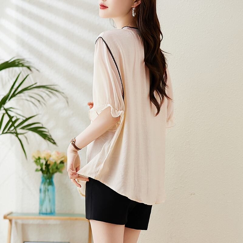初回送料無料 半袖シャツ 上着 シフォンプリントトップス レディースファション商品 人気上着