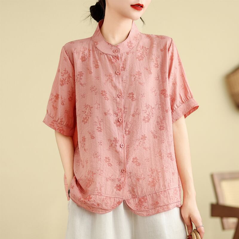 初回送料無料 上着 立襟半袖花柄シャツ レーディスファション商品 カジュアルトップス 人気上着