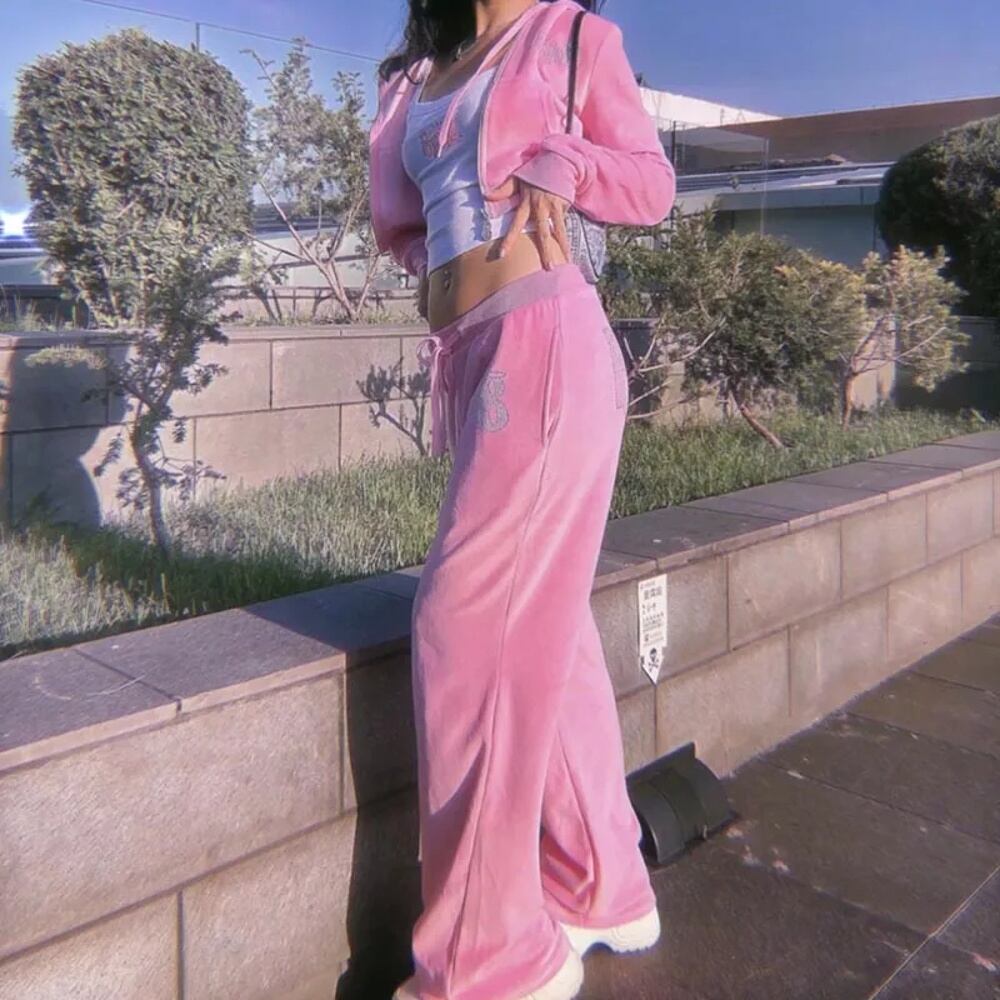 女性用スウェットシャツ,レタリングパターン,ラインストーン,ストリートウェア,ヒップホップ,カジュアル,原宿,コーラル,ベルベット パーカー ジャージ y2k T240908170338_04