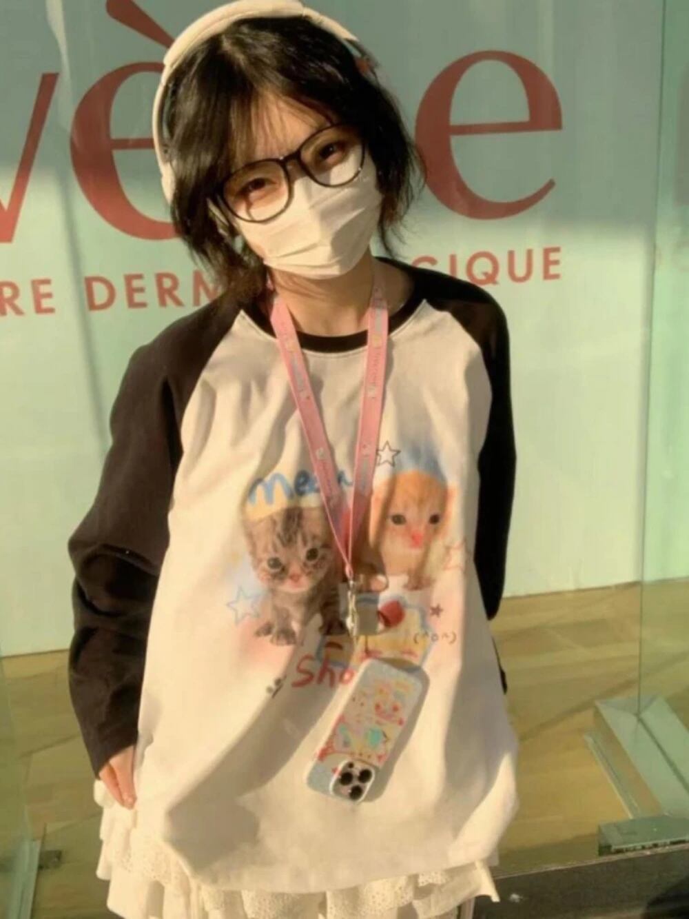 Kawaii-女性用キャットプリントパーカー,長袖パッチワークトップ,和風,対照的な色 パーカー ジャージ y2k T240908170525_01