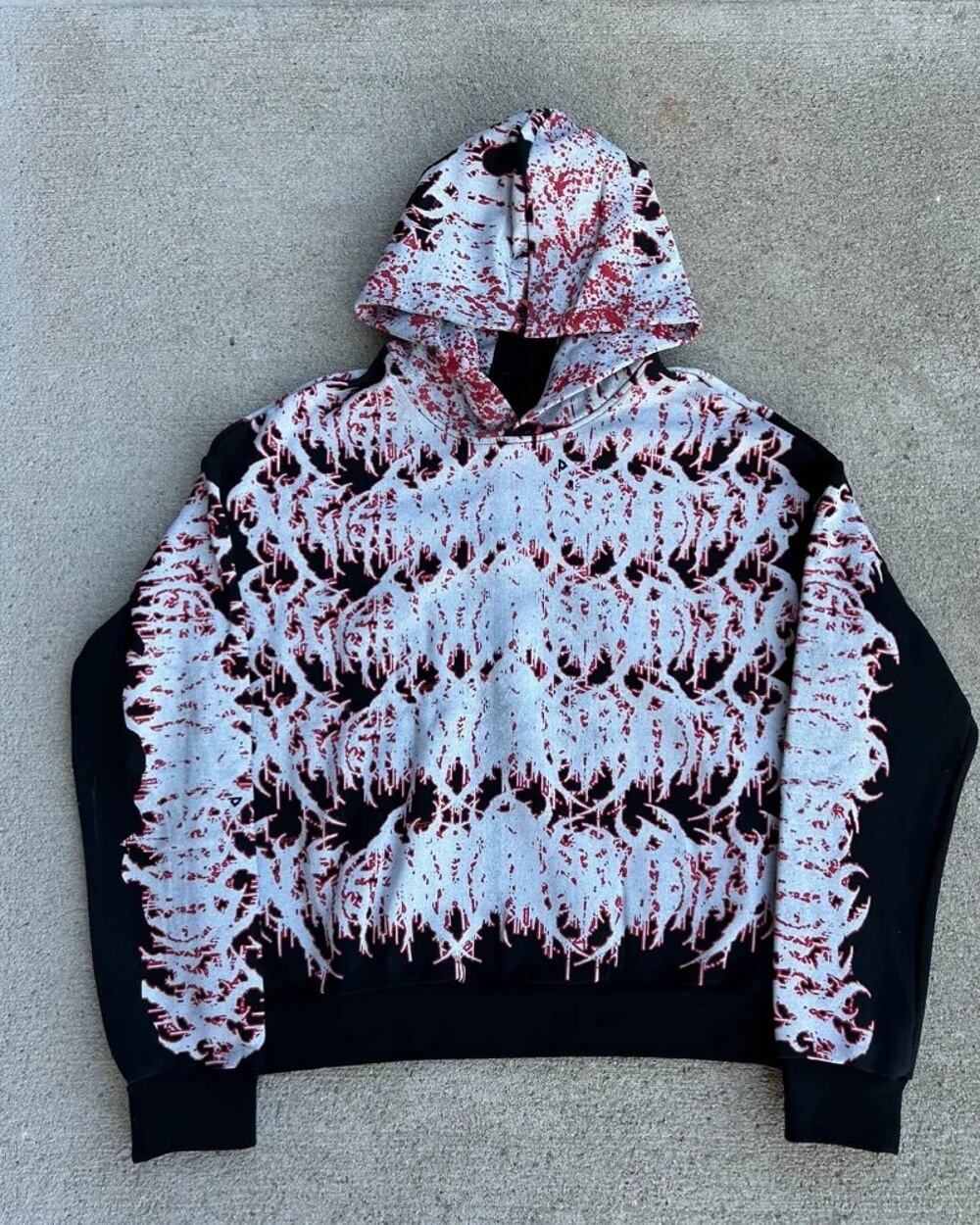女性のゴシックパンクプリント幾何学模様のプルオーバー、ダークスタイルのパーカー、y2kヴィンテージストリートウェア、ヒップホップスウェットシャツ、カップルの服 パーカー ジャージ y2k T240908170554_02