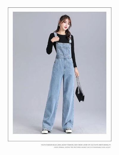 秋服デニムサロペット女性新型ゆったり学生ワイドパンツ