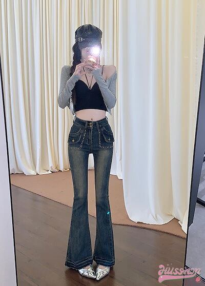 2024春夏パンツ デニム ジーンズ スキニー ワイドレッグハイウエスト 脚長効果 美脚効果 細見え ウォッシュ加工 春 カジュアル 韓国ファッション レディース お出かけ