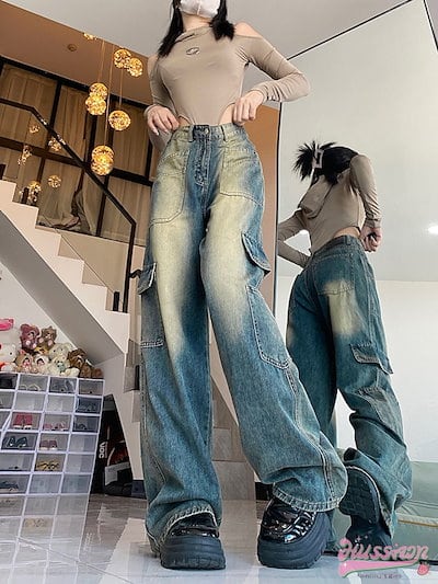2024春夏パンツ デニム ジーンズ ワイド ストレート ハイウエスト 脚長効果 美脚効果 細見え ウォッシュ加工 ポケット 春 カジュアル 韓国ファッション レディース お出かけ