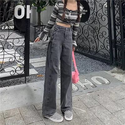 2024春夏 デニムパンツ ボトムス ゆったり カジュアルシルエット レッグロングパンツ 学生 韓国ファッション系