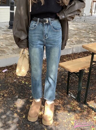 パンツ デニム ジーンズ ワイド ストレート ハイウエスト 脚長効果 美脚効果 細見え ウォッシュ加工 春 カジュアル 韓国ファッション レディース お出かけ