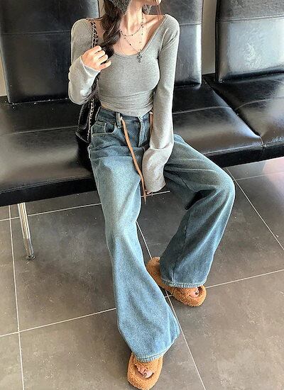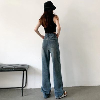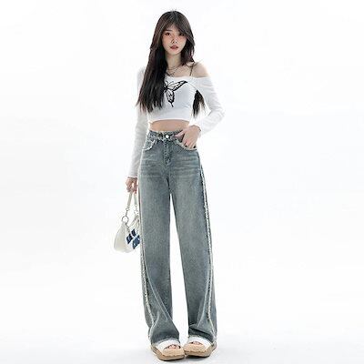 【短/長2タイプ】人気 デニムパンツ レディース ゆったり ワイド ハイウエスト フレア ダメージ 大きいサイズ レディースロングパンツ ストレート ストレッチ スキニー ジーンズ け メガ割